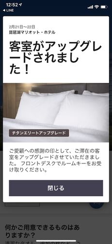 こんにちは!saoです。 私のプラチナ修行の定番、琵琶湖マリオットにまたまた泊まりに行ってきました。 事前にモバイルチェックインをしていきます。 その時にチェックイン時間の指定もしています。 大体その指定時間の1時間ほど前に「部屋の用意が出来まし…