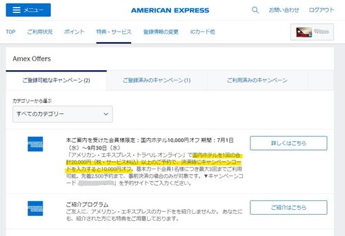 こんにちは!saoです。 以前こちらのブログで紹介したアメックスオファーのホテル10,000円割引ですが、利用された方いらっしゃいますか? 7月1日~9月30日までに国内対象ホテルに合計20,000円以上の予約で10,000円割引になるという嬉しいオファーでした。 上…