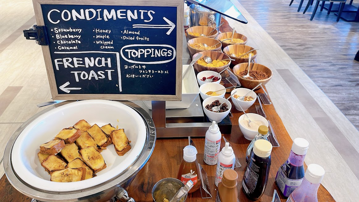 フレンチトーストもありますが、カスタード乗せになっているので、チョコやキャラメルソースをかけると甘々になるので注意です。