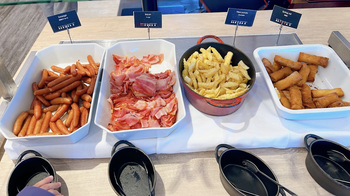 温料理はソーセージ・ベーコン・ポテト・春巻き