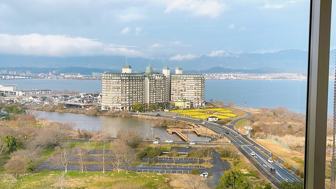 窓が大きく取られているので、比叡山の山々と琵琶湖を一望できます。