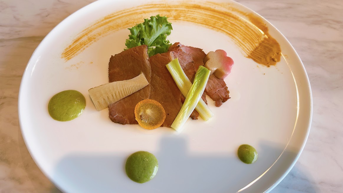 メインはローストビーフ 初春の彩野菜添え