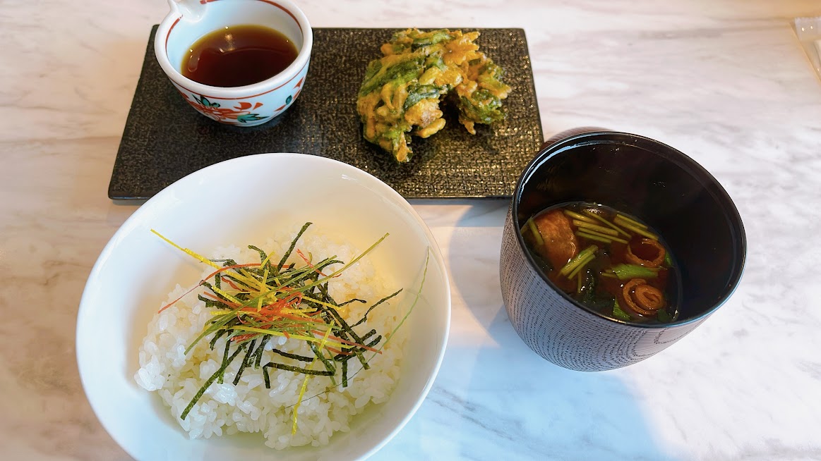 琵琶湖産氷魚と菜の花のかき揚げ添え