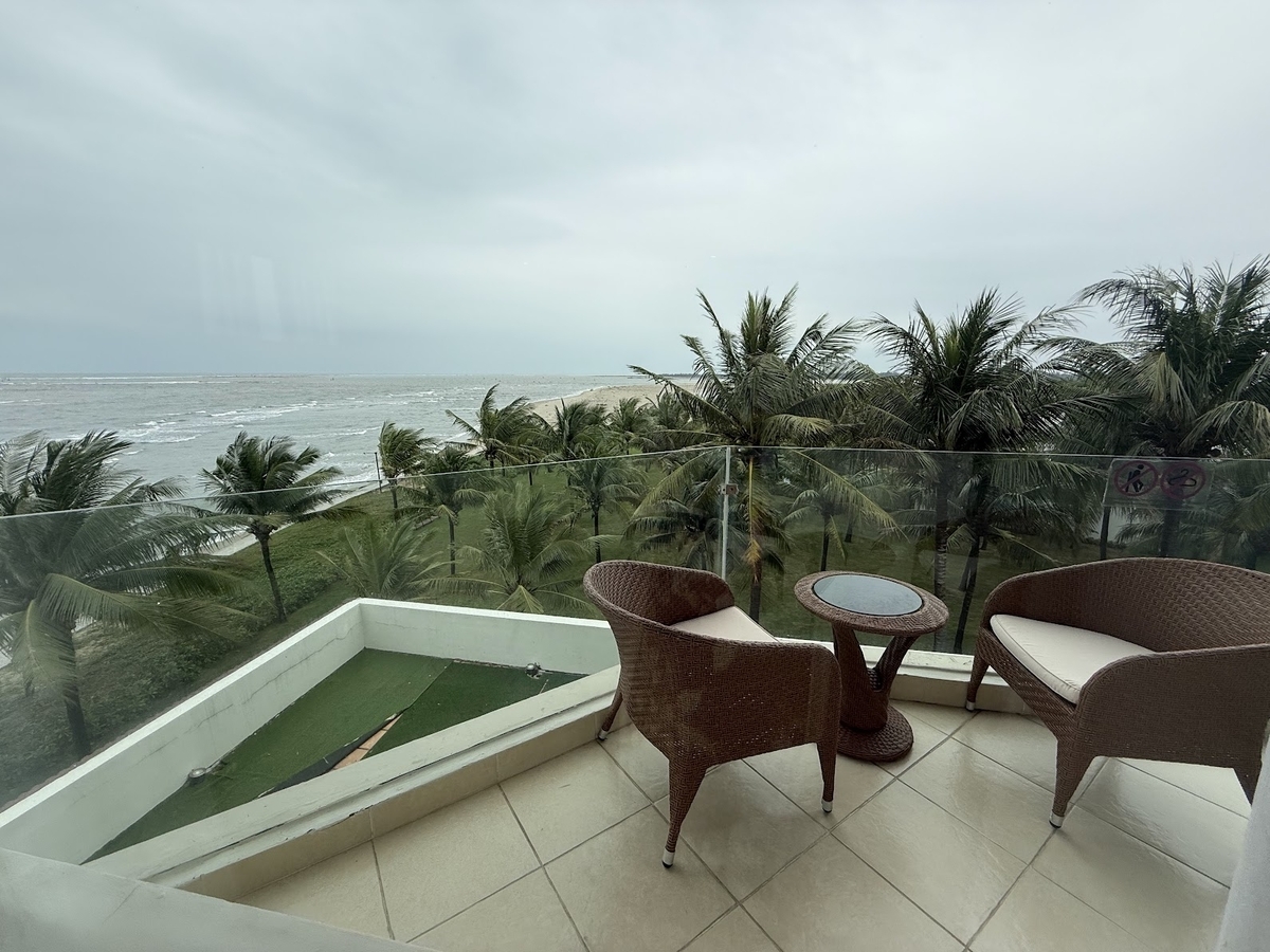 ベランダにもテーブルがあるのでここでお茶もできるのですが、雨期の時期は空と海の色が・・・