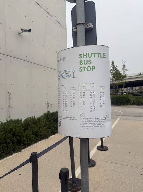 送迎バスは Publicの建物の前あたり に停まるとのこと。
