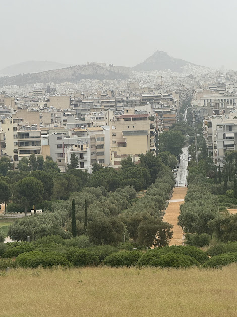 スタヴロス・ニアルホス文化センターのガラス張りのパブリックスペースからは、アテネの街並みとともに、パルテノン神殿やリカヴィトスの丘が一直線に見渡せます