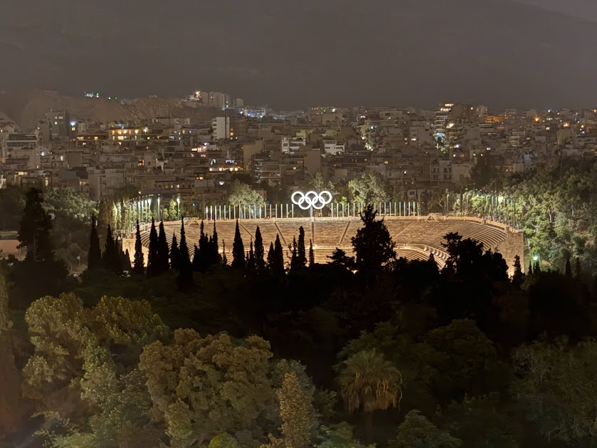 Panathenaic Stadiumのライトアップが美しい