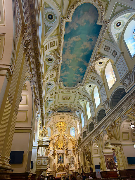 空の絵のような天井がとても素敵で、見上げているとまるで天使たちが舞っているかのような優しい雰囲気に包まれます。